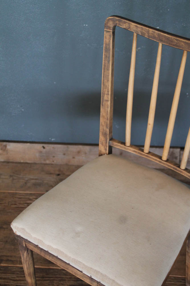 1950s upholstered chair made with fir and beech wood. Seat made with gauze. Chairs currently need restoring.