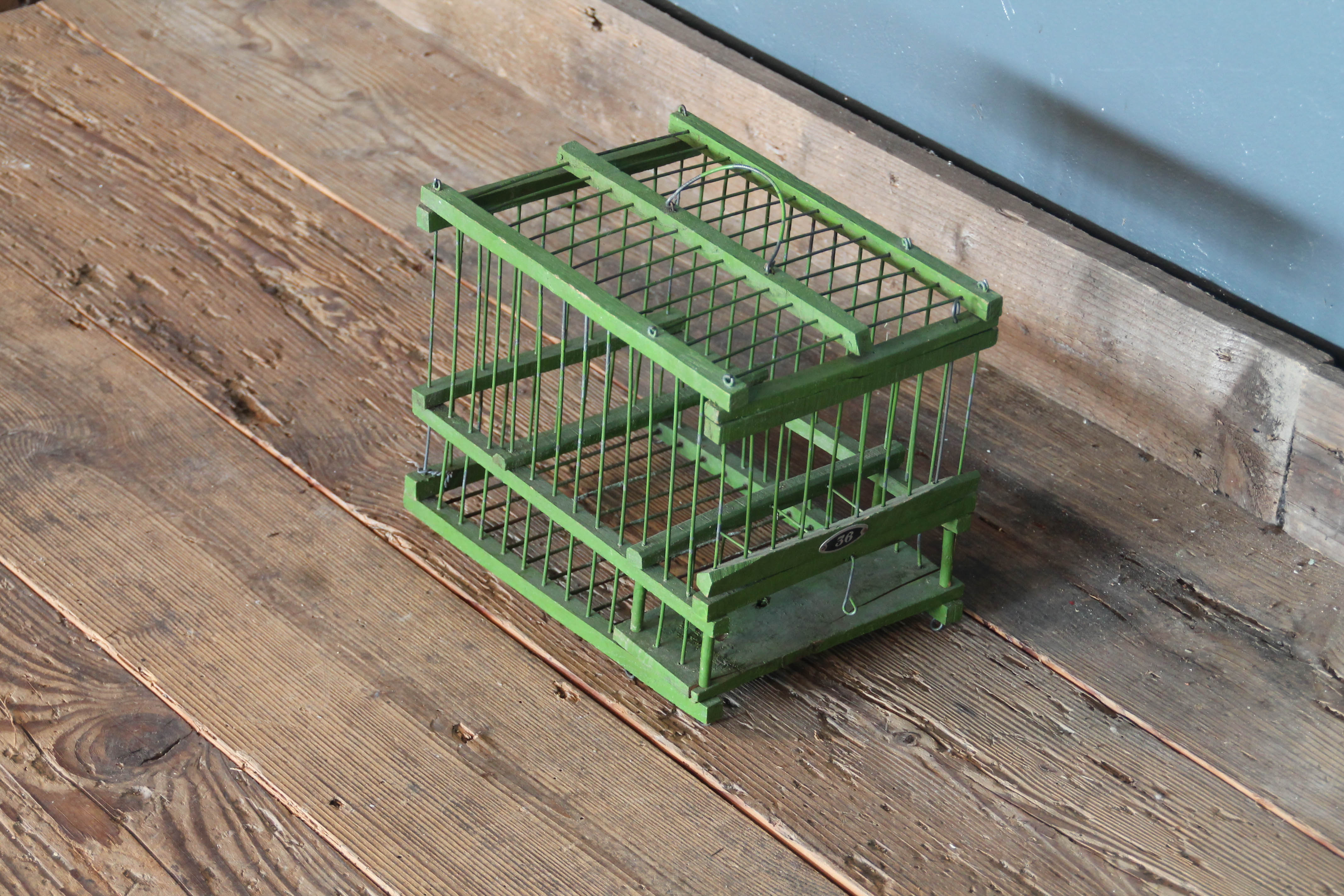 1950s small green wooden cage. It can be an original furniture complement both indoors and outdoors.