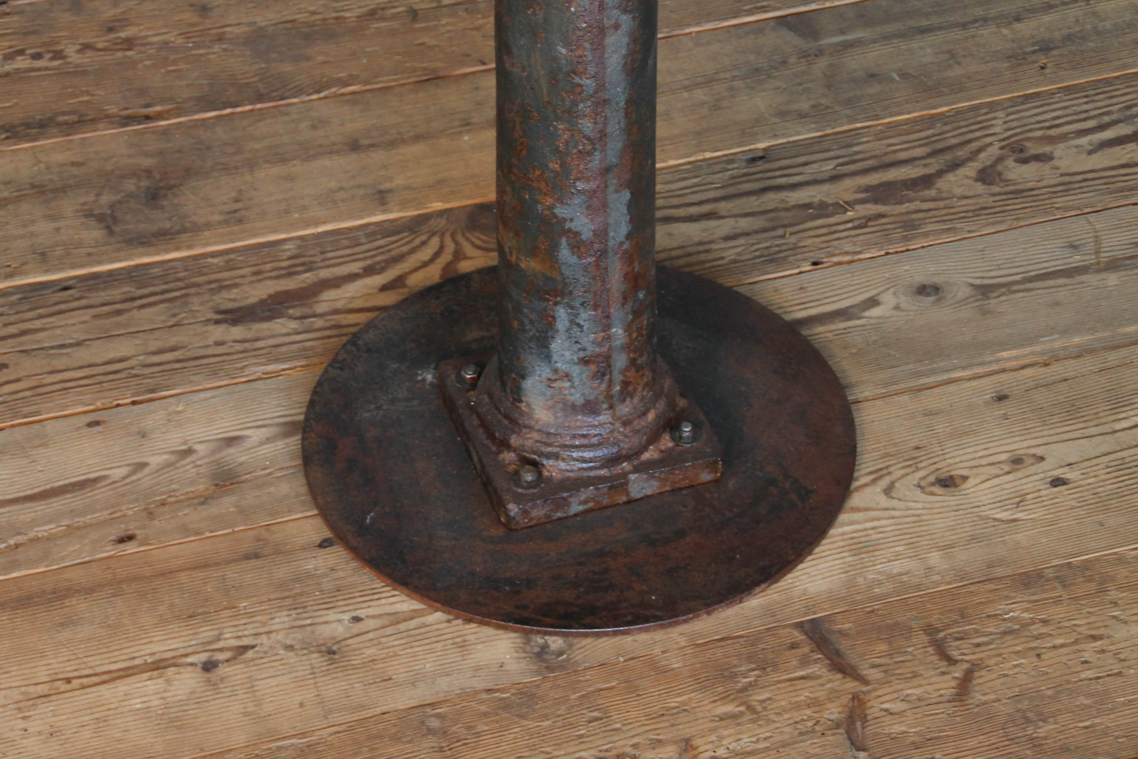 Early 1900 small table with a cast iron base and an old wooden reel top